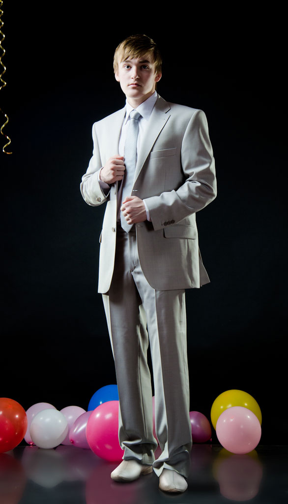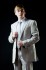 Классический костюм с пиджаком на 2-х пуговицах с 2-мя шлицами. Вспушка по воротнику и бортам. На рукавах- рабочая шлица (пуговицы можно расстегнуть). Во внутренний карман, предназначенный для мобильного телефона, вшита специальная ткань для защиты от электромагнитных излучений. Брюки заужены, талия занижена, без защипов.