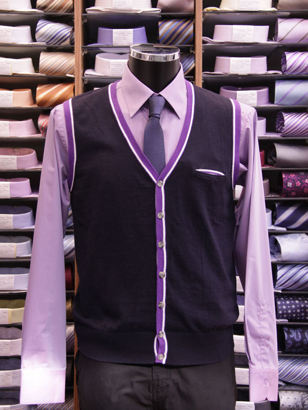 Классический жилет с глубоким V-образным вырезом, застегивается на пуговицы. Наружный верхний карман придает модели элегантность и легкий шарм.
