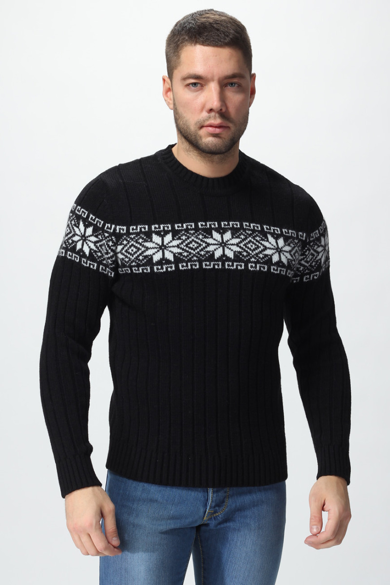 Тёплый толстый джемпер с классическим скандинавским рисунком согреет Вас в холодную зиму. Его уместно надеть с джинсами или с брюками. Вязка- чередование лицевых и изнаночной петли позволяет джемперу в меру облегать фигуру.